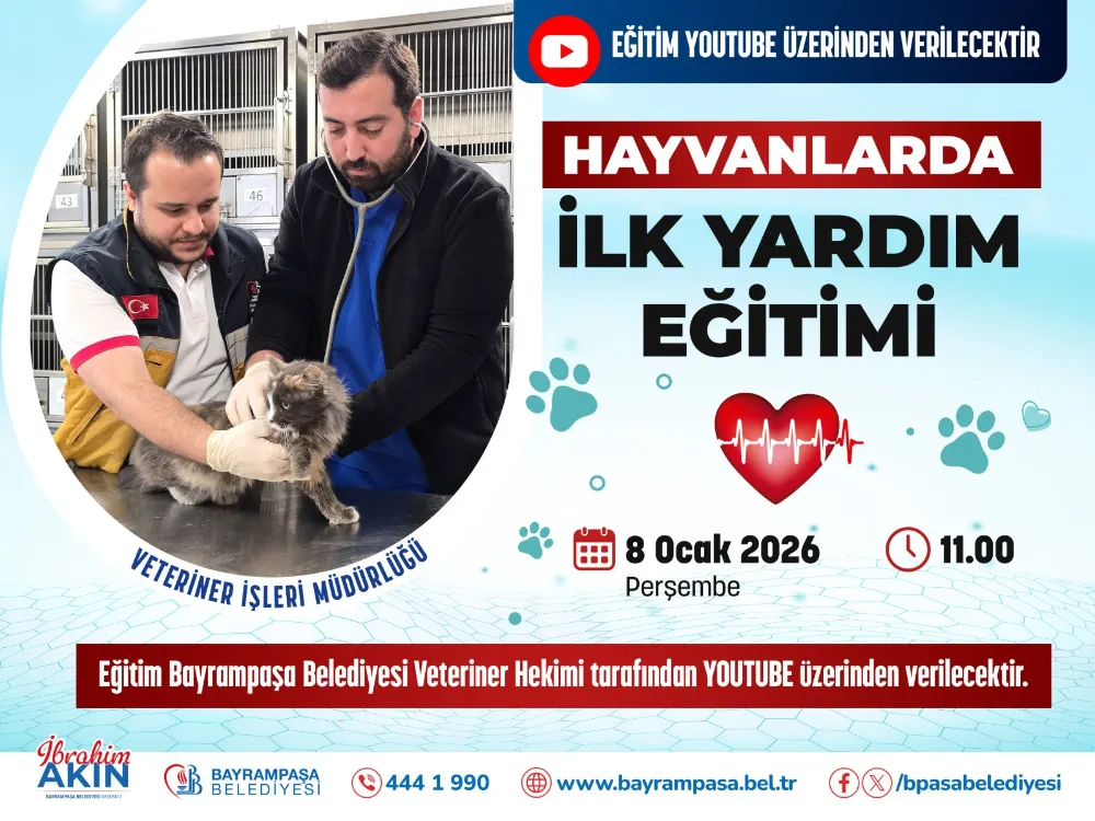 saat 11.00’de belediyenin YouTube kanalı üzerinden çevrim içi olarak gerçekleştirilecek eğitimde, hayvanlarda ilk yardım uygulamaları kapsamlı biçimde anlatılacak.